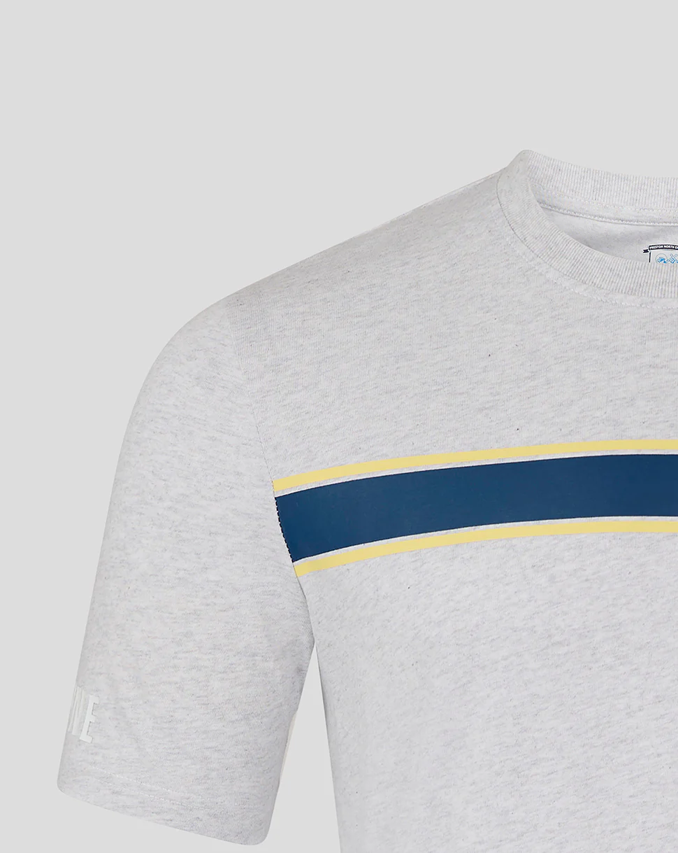 Description: Perform at your peak in this Men’s Preston North End Short Sleeve Classic Cotton T Shirt 1. The ribbed crew neck collar provides a comfortable fit, while short sleeves boost mobility – ensuring no restrictions while kicking, dribbling, or scoring. Sleek channel detailing at the sleeve and hem ensures a contemporary look.